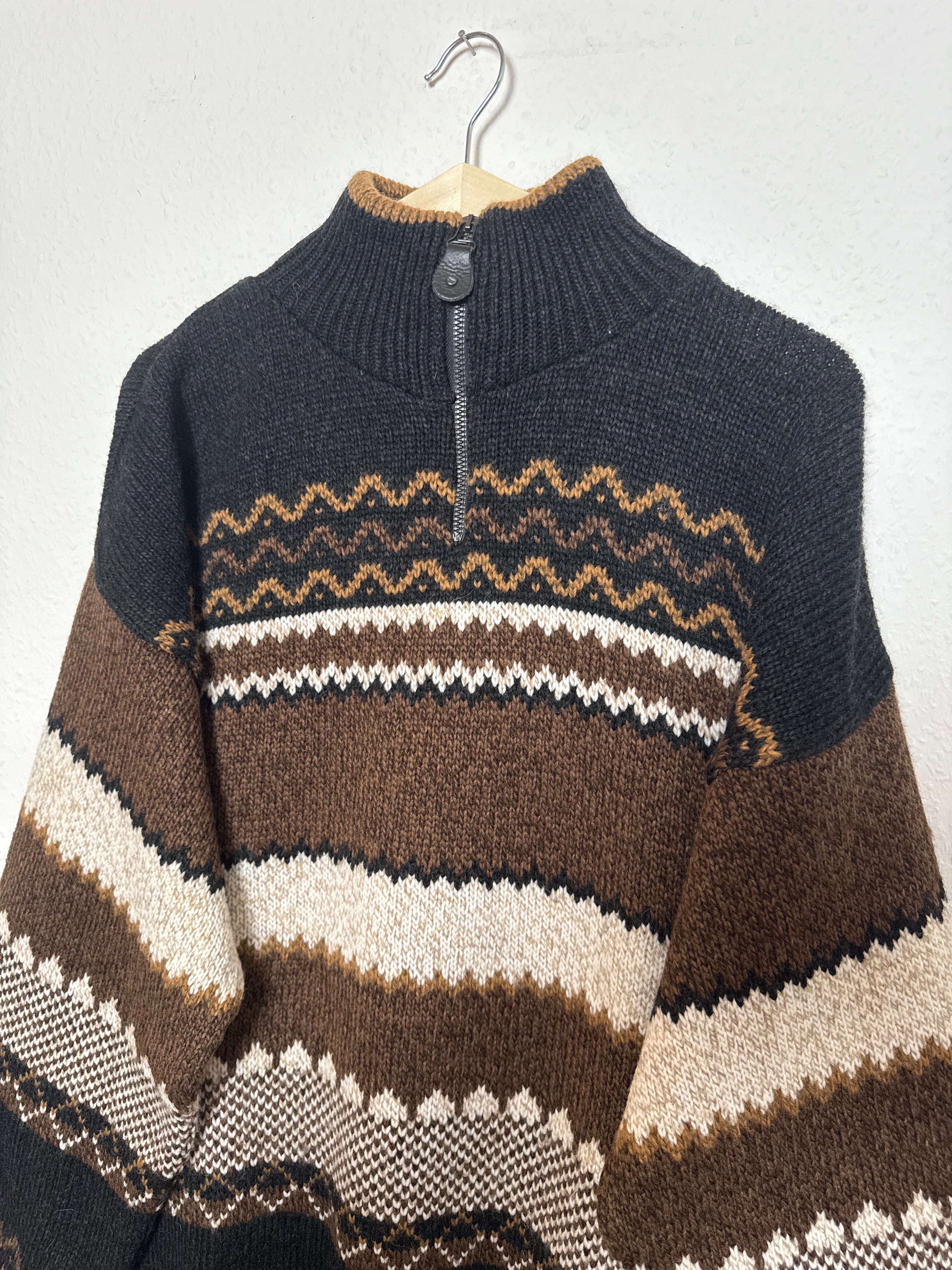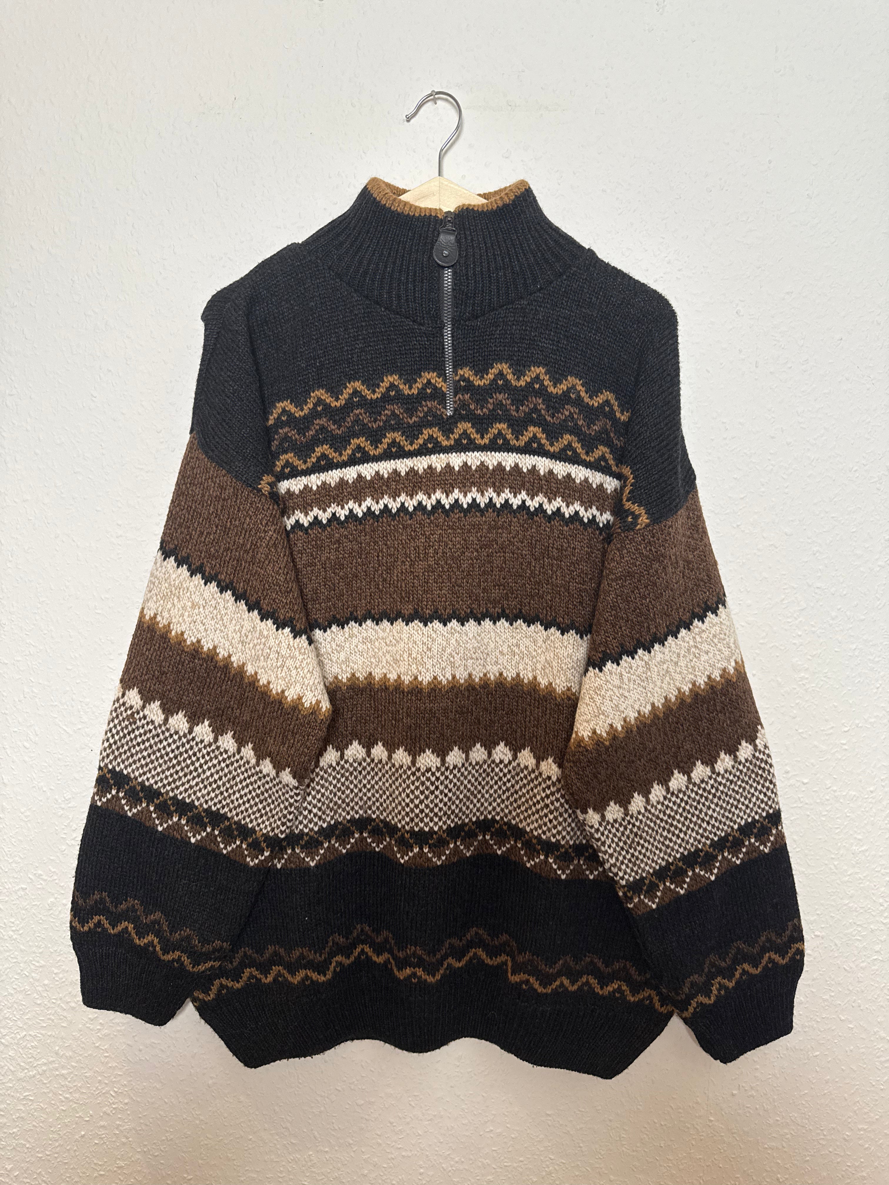 Ein wunderschöner Vintage Strickpullover in Braunem-Retromuster.