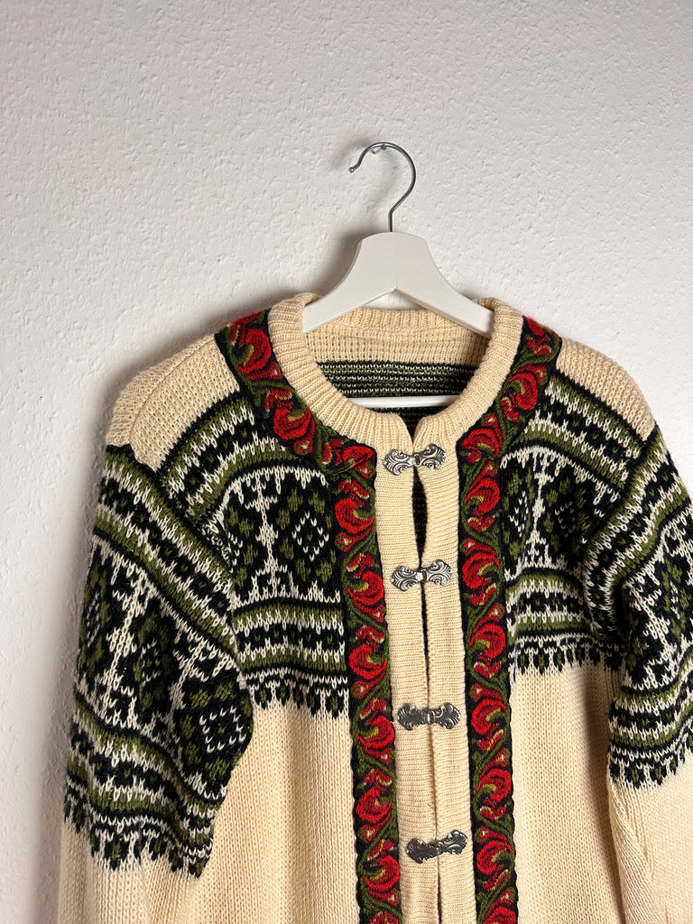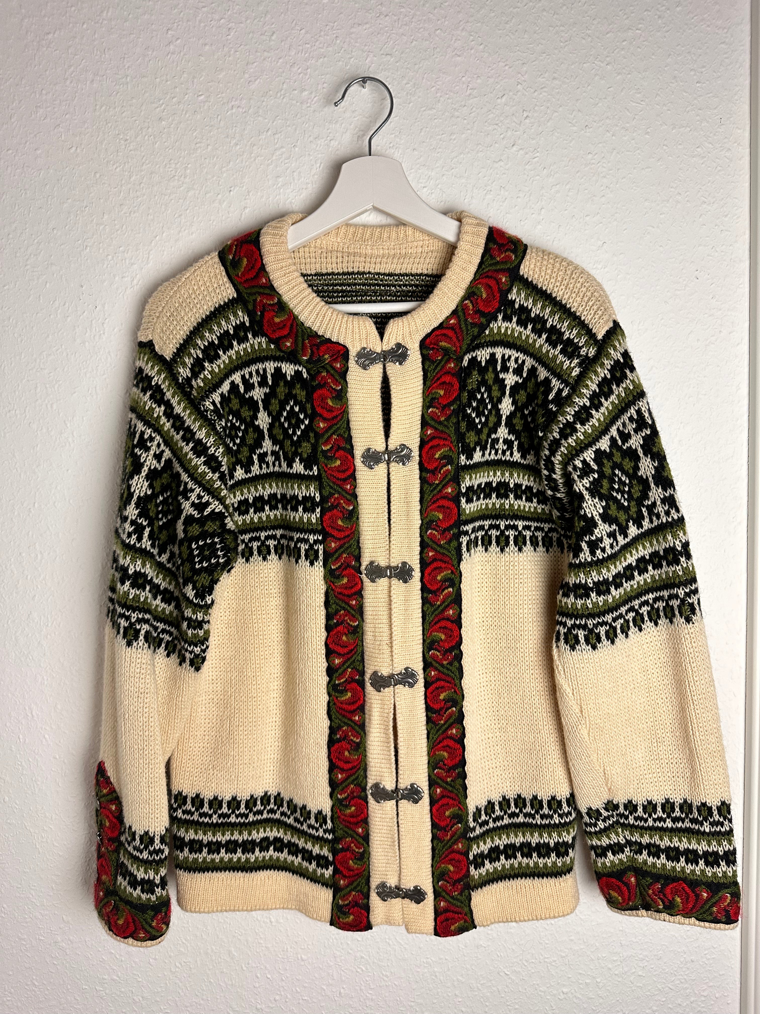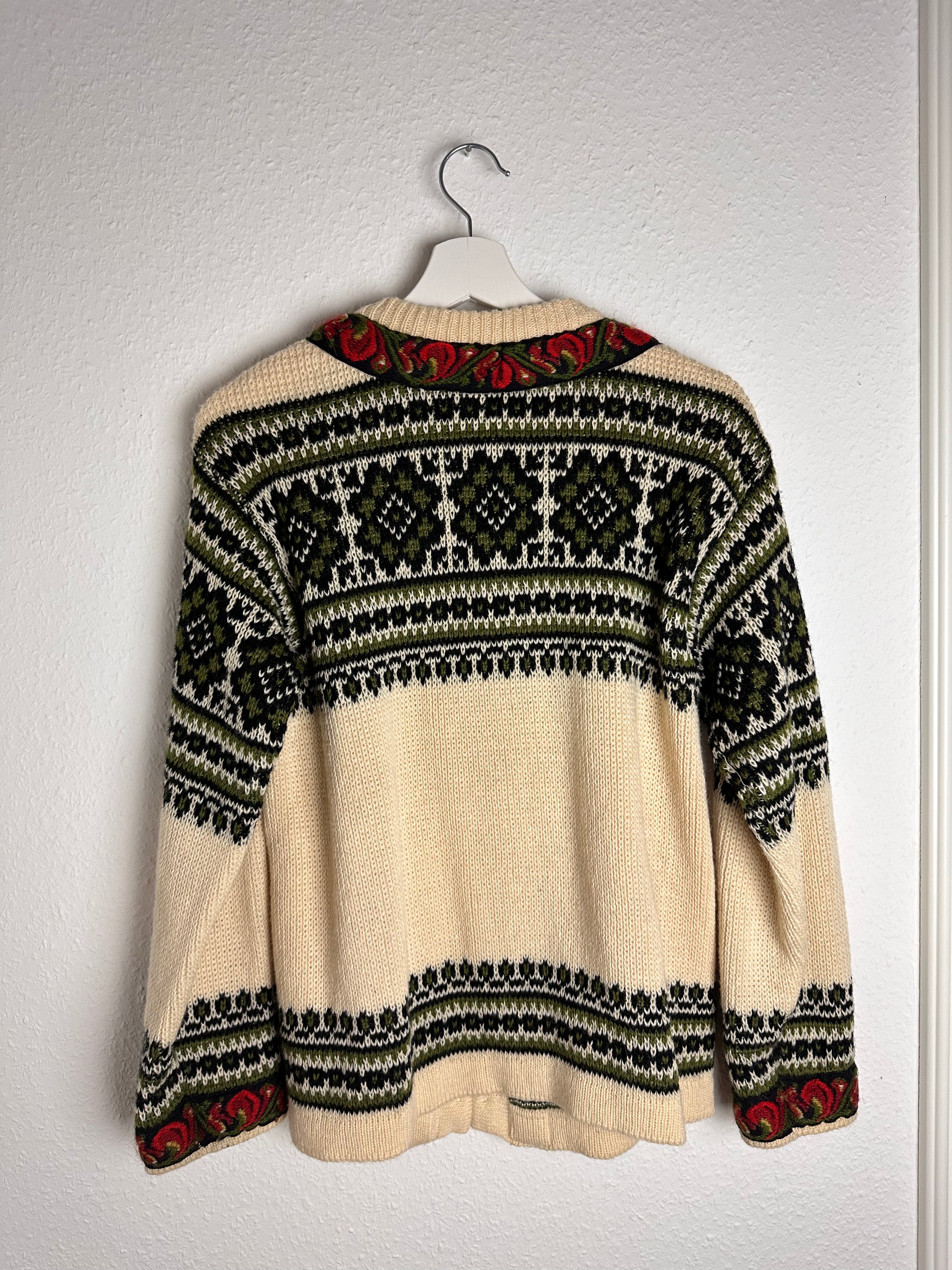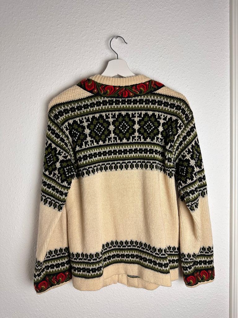 Eine wunderschöne Handmade Vintage Norway Strickjacke mit total feinem Strickmuster. Wir lieben die süßen Strick-Akzente.