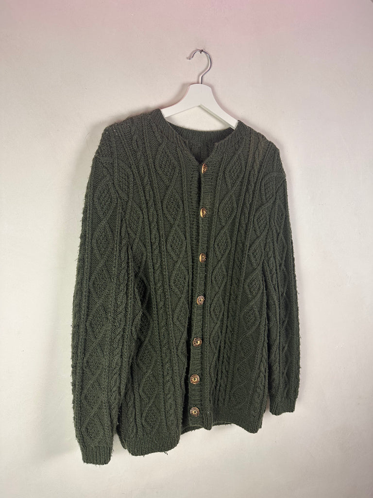 Eine wunderschöne Vintage Strickjacke in dunkelgrün mit wunderbar, süßem Zopf-Strickmuster. So kuschelig und qualitativ.