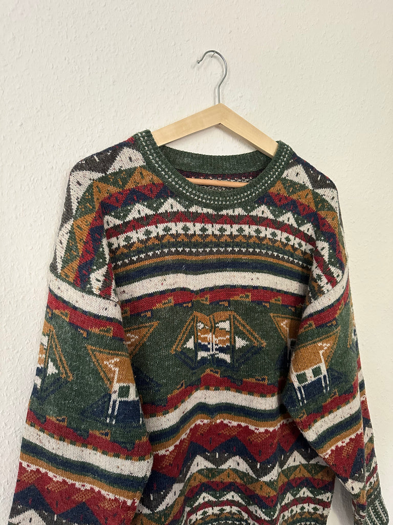 Ein wunderschöner bunter 80´s Strickpullover. Wir lieben den tollen Vintage Fit und besonders die Farben.