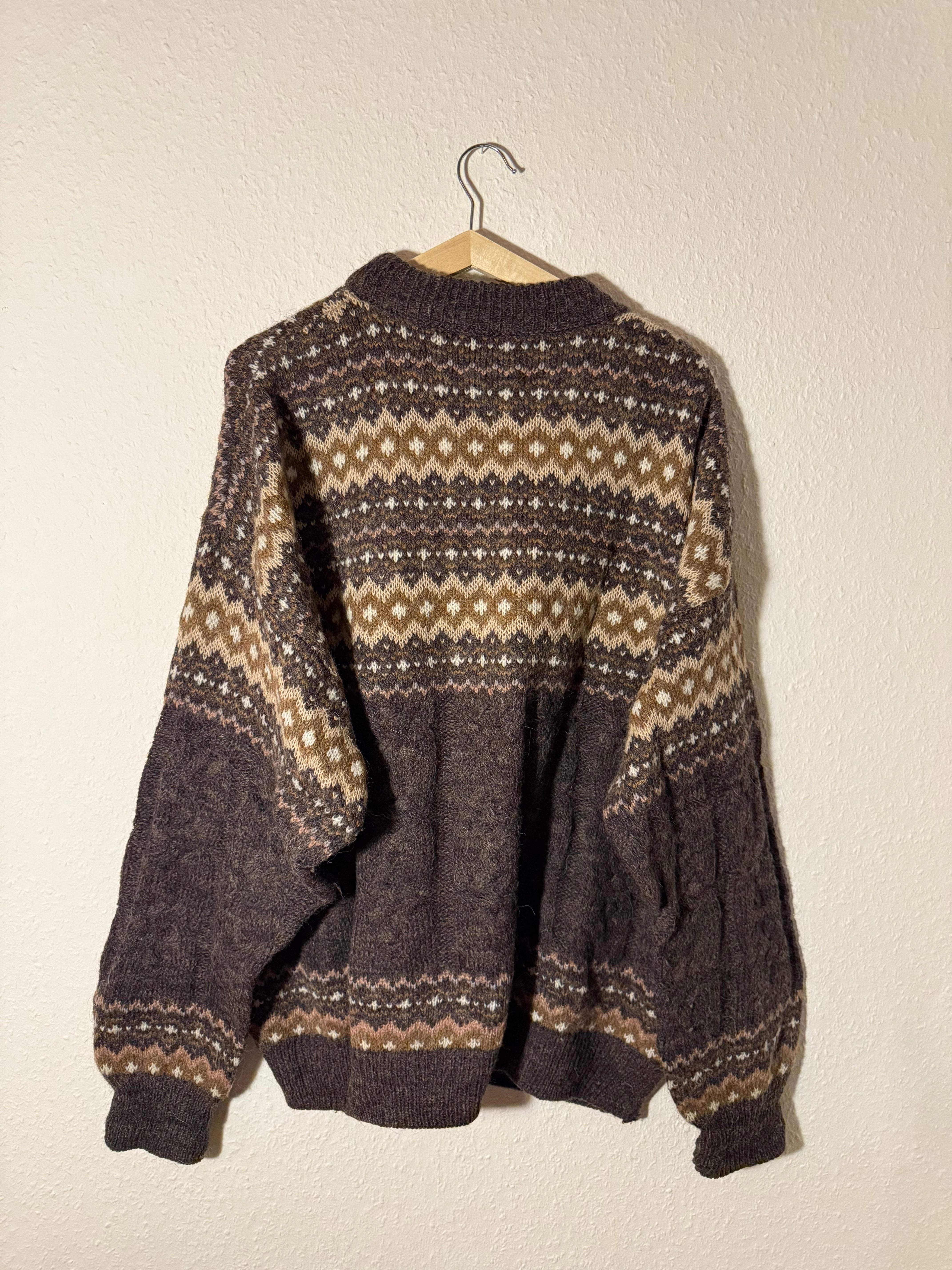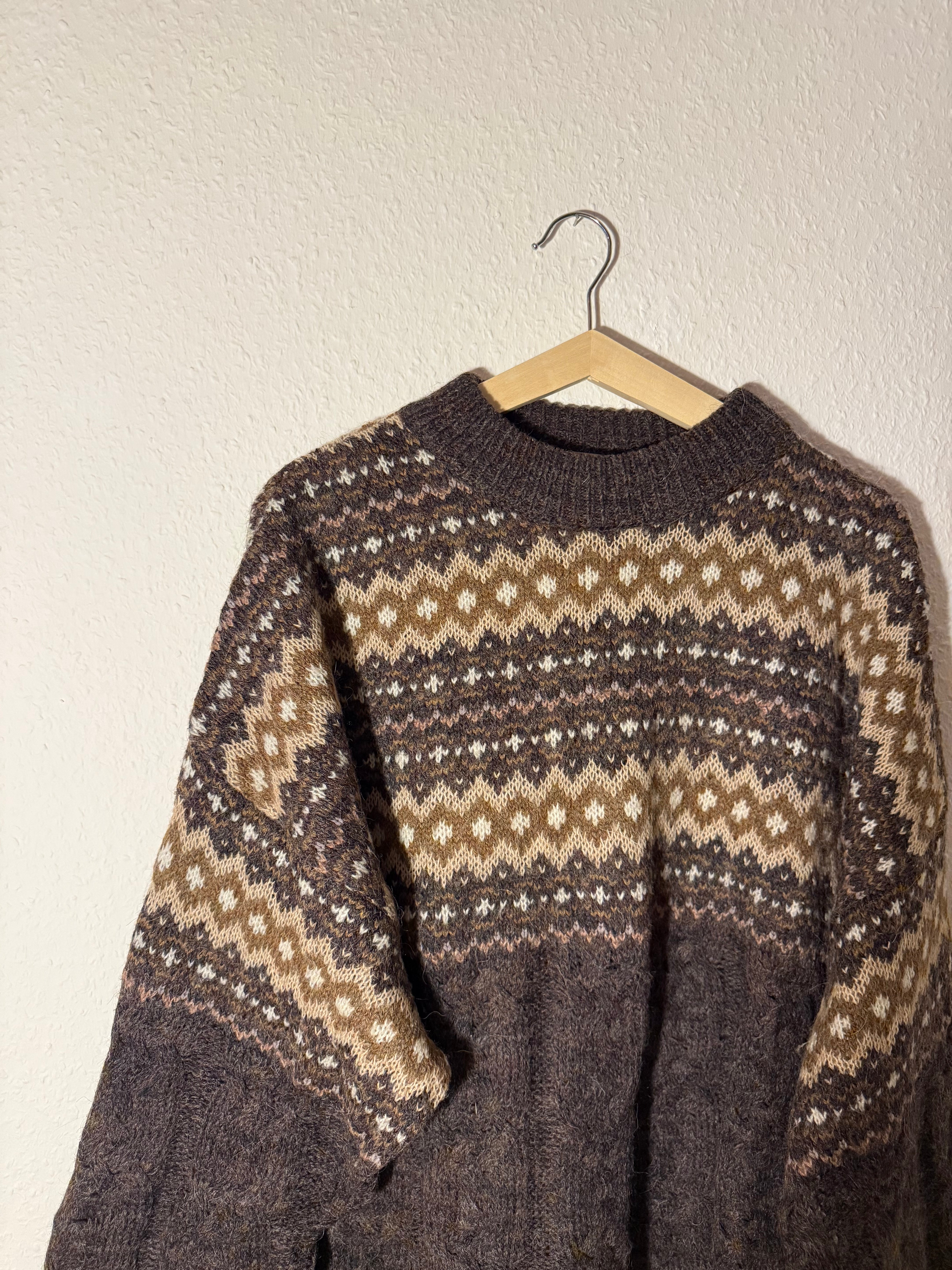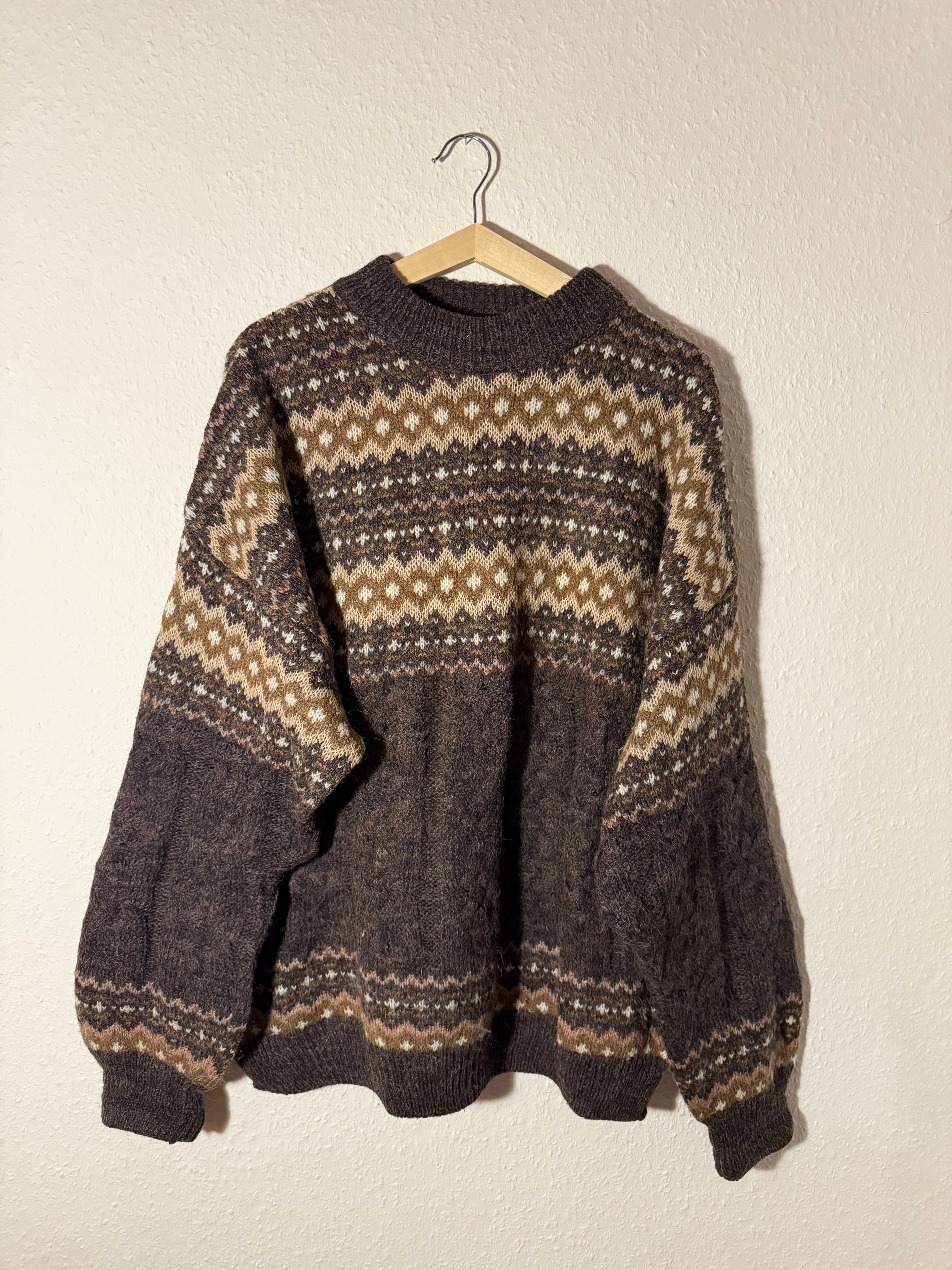 Wie schön will man sein? Ein wunderschöner Retro Boho Crazy Pattern Strickpullover aus Wolle und Alpaca. So wundervolle Farben und der Fit ist unglaublich angenehm.