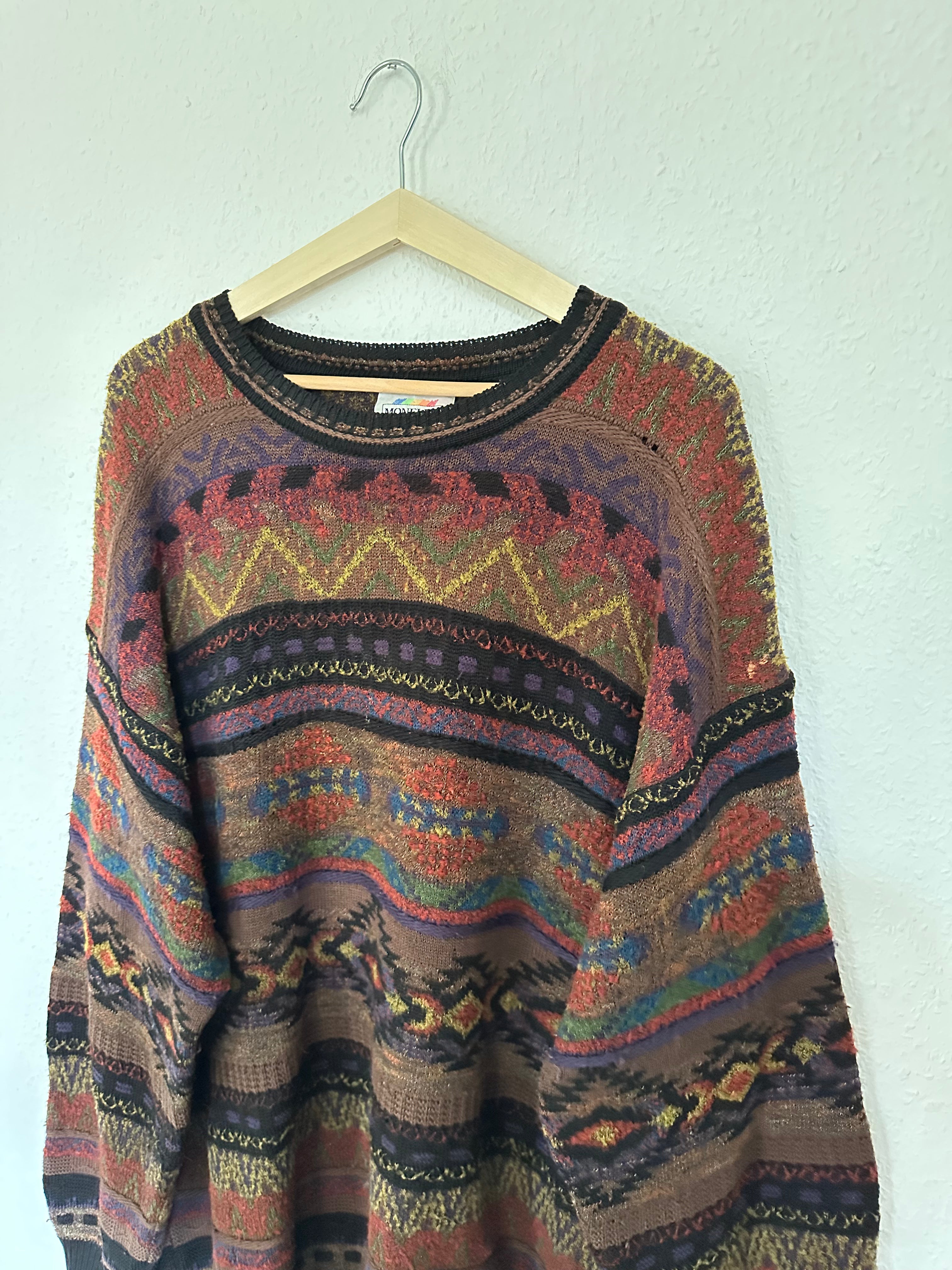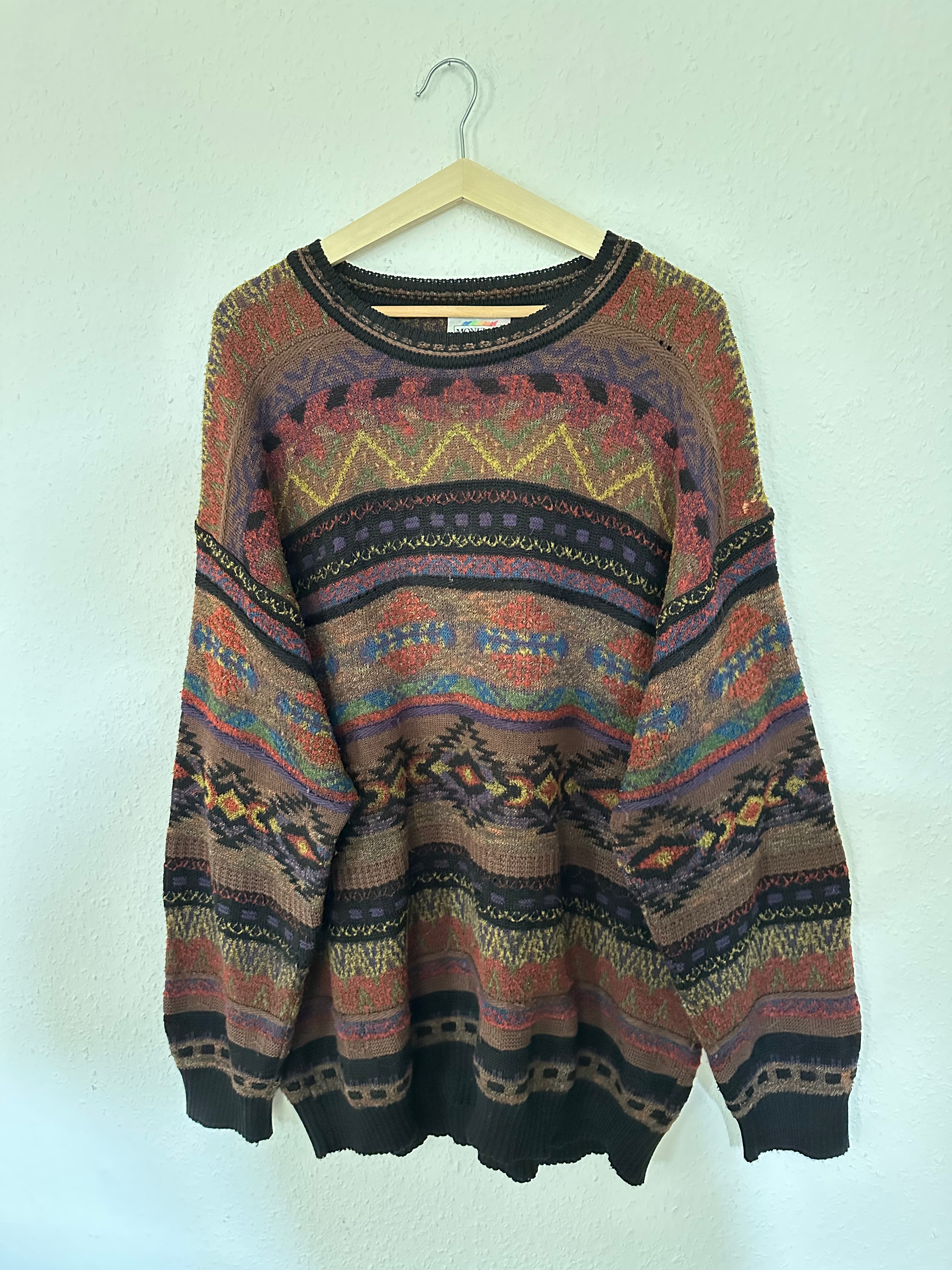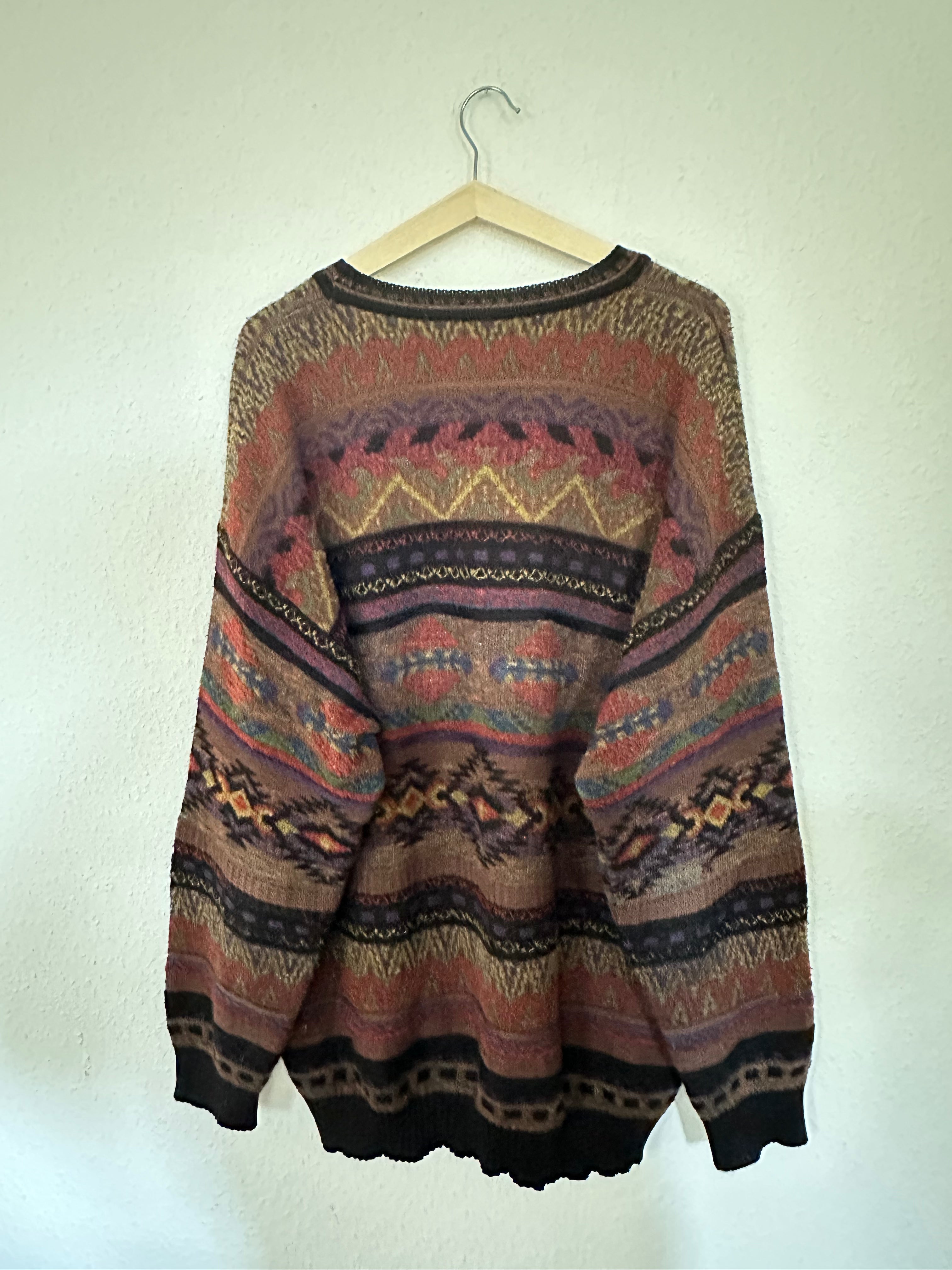Ein wunderschöner Dark Akademia Strickpullover mit verspieltem Farbmuster. , Sehr qualitativ und aus Lammwolle gefertigt.