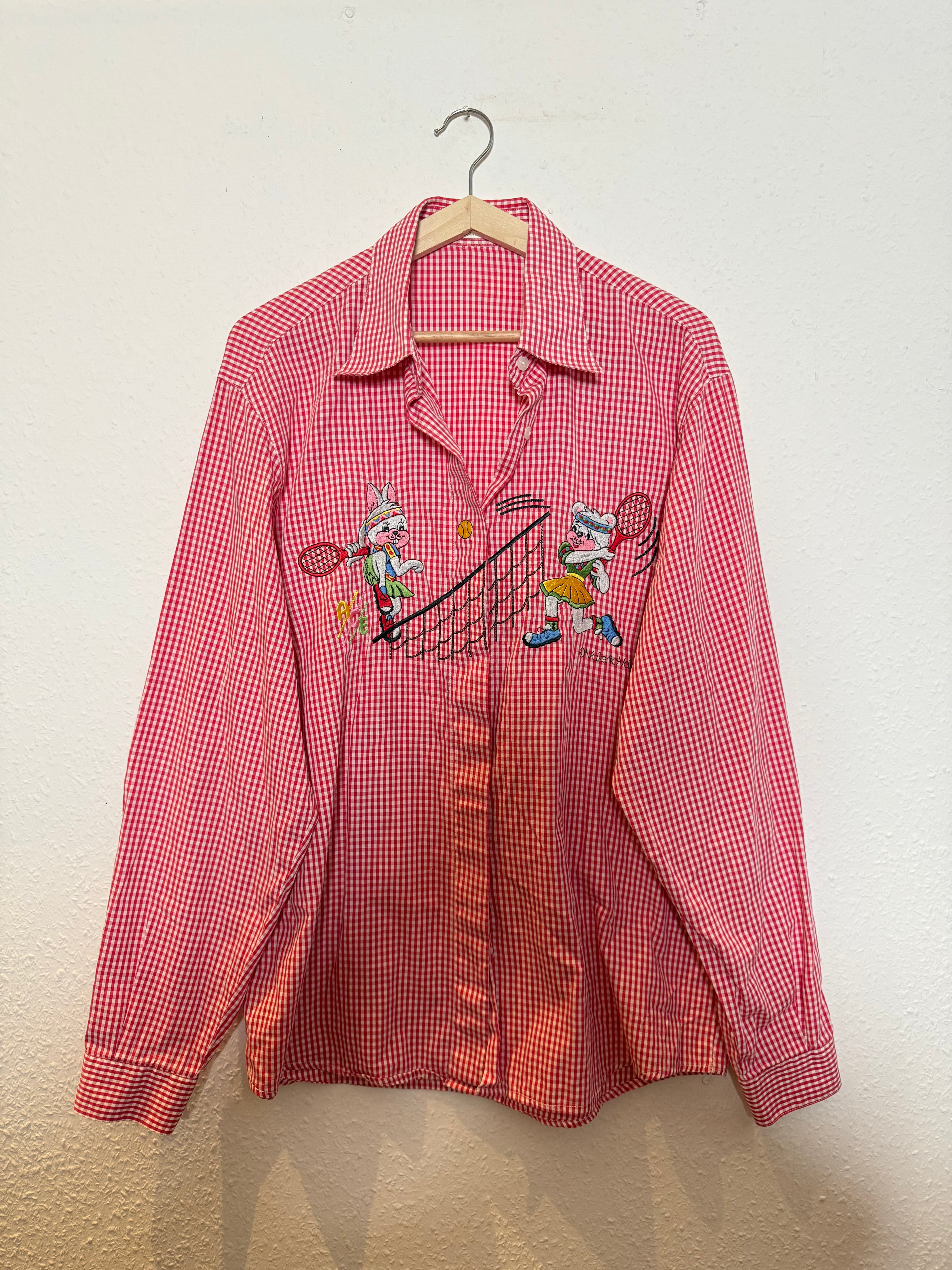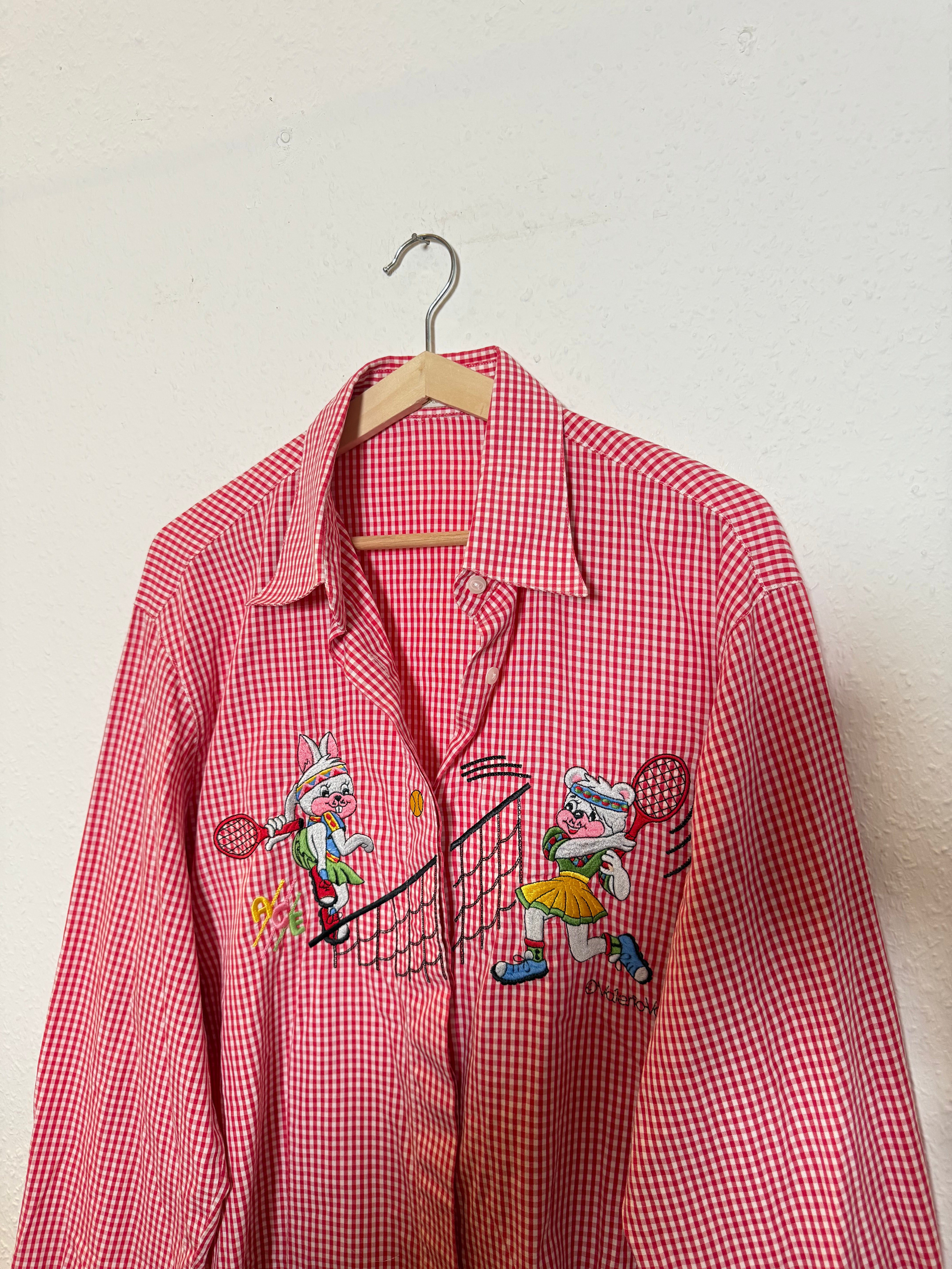 Ein absolut cooles und schönes Vintage Hemd im Karomuster mit Tennis-Comic Stickelementen.
